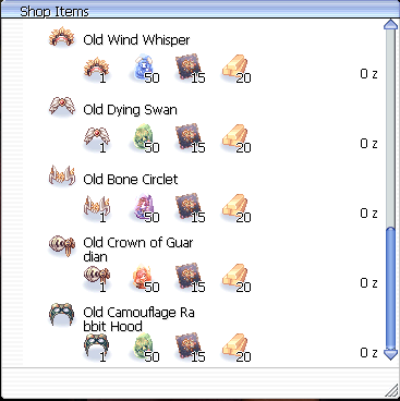 <table data-full-width="true"><thead><tr><th width="176">Name</th><th width="800">Info</th></tr></thead><tbody><tr><td><img src="https://2411723323-files.gitbook.io/~/files/v0/b/gitbook-x-prod.appspot.com/o/spaces%2FHBSxyfzOogaSBz4mhKSv%2Fuploads%2FKDhPOP4uJBoP8twz2yZ1%2Fimage.png?alt=media&#x26;token=f6865ca2-d048-44ba-8569-524d05ebed7a" alt="" data-size="original"> Old Rune Circlet [1]</td><td><p>Damage taken from DemiHuman monsters and Human Player - 5%, HP+15%</p><p>Damage dealt by Bowling Bash +5% <br>Damage dealt by Spiral Pierce +5%<br></p><p>When the refinement value is 7 or higher, additional damage taken from DemiHuman monsters and Human Player - 5% <br>Damage dealt by Bowling Bash +5% <br>Damage dealt by Spiral Pierce +5%<br></p><p>When the refinement value is 9 or higher <br>Damage dealt by Bowling Bash +5% <br>Damage dealt by Spiral Pierce  +5%<br></p><p>When the refinement value is 10 Attack speed + 1% for each increase in refinement value of [Old Rune Circlet]<br></p><p>[Grade Bonus] <br>[Grade D] hp+3% per 2 refines <br>[Grade C] Str+1 per 2 refines <br>[Grade B] ATK +5 per 2 refines <br>[Grade A] damage to all size 2% and hp+1% per 2 refines</p></td></tr><tr><td><img src="https://2411723323-files.gitbook.io/~/files/v0/b/gitbook-x-prod.appspot.com/o/spaces%2FHBSxyfzOogaSBz4mhKSv%2Fuploads%2FX5FpYfKBZjfxOf5rZHS4%2Fimage.png?alt=media&#x26;token=aa6525f1-3569-4f98-b5cb-d1c6c0375589" alt="" data-size="original"> Old Crown of Guardian [1]</td><td><p>Damage taken from DemiHuman monsters and Human Player - 5%, HP+15%</p><p>Damage dealt by Sacrifice +5% <br>Damage dealt by Grand Cross +5%<br></p><p>When the refinement value is 7 or higher, additional damage taken from DemiHuman monsters and Human Player - 5% <br>Damage dealt by Sacrifice +5% <br>Damage dealt by Grand Cross +5%<br></p><p>When the refinement value is 9 or higher, <br>Damage dealt by Sacrifice +5% <br>Damage dealt by Grand Cross +5%<br></p><p>When the refinement value is 10 Attack speed + 1% for each increase in refinement value of [Old Crown of Guardian]<br></p><p>[Grade Bonus] <br>[Grade D] hp+3% per 2 refines <br>[Grade C] Vit+1 per 2 refines <br>[Grade B] ATK +5 per 2 refines <br>[Grade A] damage to all size 2% and hp+1% per 2 refines</p></td></tr><tr><td><img src="https://2411723323-files.gitbook.io/~/files/v0/b/gitbook-x-prod.appspot.com/o/spaces%2FHBSxyfzOogaSBz4mhKSv%2Fuploads%2Fq85MrTnKSeTJ31EHZWi5%2Fimage.png?alt=media&#x26;token=cc30ced1-1c69-4a38-8086-e473a2dab55a" alt="" data-size="original"> Old Mitra [1]</td><td><p>Damage taken from DemiHuman monsters and Human Player - 5%, HP+15%</p><p>Damage dealt by Magnus Exorcismus +5% <br>Damage dealt by Holy Light +10%<br></p><p>When the refinement value is 7 or higher, additional damage taken from DemiHuman monsters and Human Player - 5% <br>Damage dealt by Magnus Exorcismus +5% <br>Damage dealt by Holy Light +10%</p><p><br>When the refinement value is 9 or higher, <br>Damage dealt by Magnus Exorcismus +5% Damage dealt by Holy Light +10%<br></p><p>When the refinement value is 10 Delay after cast - 1% for each increase in refinement value of [Old Mitra]<br></p><p>[Grade Bonus] <br>[Grade D] hp+3% per 2 refines <br>[Grade C] Int+1 per 2 refines <br>[Grade B] MATK +5 per 2 refines <br>[Grade A] damage to all size 2% and hp+1% per 2 refines</p></td></tr><tr><td><img src="https://2411723323-files.gitbook.io/~/files/v0/b/gitbook-x-prod.appspot.com/o/spaces%2FHBSxyfzOogaSBz4mhKSv%2Fuploads%2F8l7ldMzr87JX5Yq8iVXC%2Fimage.png?alt=media&#x26;token=ec7b192e-d892-4907-af20-ac45e084ebba" alt="" data-size="original"> Old Blazing Soul [1]</td><td><p>Damage taken from DemiHuman monsters and Human Player - 5%, HP+15%</p><p>Asura Strike Cast time -5% <br>Damage dealt by Chain Crush Combo +5%<br></p><p>When the refinement value is 7 or higher, additional damage taken from DemiHuman monsters and Human Player - 5% <br>Asura Strike Cast time -5% <br>Damage dealt by Chain Crush Combo +5%<br></p><p>When the refinement value is 9 or higher, <br>Asura Strike Cast time -5% <br>Damage dealt by Chain Crush Combo +5%<br></p><p>When the refinement value is 10 Attack speed + 1% for each increase in refinement value of [Old Blazing Soul]<br></p><p>[Grade Bonus] <br>[Grade D] hp+3% per 2 refines <br>[Grade C] Str+1 per 2 refines <br>[Grade B] ATK +5 per 2 refines <br>[Grade A] damage to all size 2% and hp+1% per 2 refines</p></td></tr><tr><td><img src="https://2411723323-files.gitbook.io/~/files/v0/b/gitbook-x-prod.appspot.com/o/spaces%2FHBSxyfzOogaSBz4mhKSv%2Fuploads%2FcgTpiD5bkJpdZbyndUDg%2Fimage.png?alt=media&#x26;token=f7eb4a6b-53c5-4db5-a57d-195d639beca0" alt="" data-size="original"> Old Driver Band [1]</td><td><p>Damage taken from DemiHuman monsters and Human Player -5%, HP+15%</p><p>Damage dealt by Mammonite +5% Damage dealt by Cart Termination +5%<br></p><p>When the refinement value is 7 or higher, additional damage taken from DemiHuman monsters and Human Player -5% <br>Damage dealt by Mammonite +5%<br> Damage dealt by Cart Termination +5%<br></p><p>When the refinement value is 9 or higher, <br>Damage dealt by Mammonite +5% <br>Damage dealt by Cart Termination +5%<br></p><p>When the refinement value is 10 Attack speed + 1% for each increase in refinement value of [Old driver band]<br></p><p>[Grade Bonus] <br>[Grade D] hp+3% per 2 refines <br>[Grade C] Str+1 per 2 refines <br>[Grade B] ATK +5 per 2 refines <br>[Grade A] damage to all size 2% and hp+1% per 2 refines</p></td></tr><tr><td><img src="https://2411723323-files.gitbook.io/~/files/v0/b/gitbook-x-prod.appspot.com/o/spaces%2FHBSxyfzOogaSBz4mhKSv%2Fuploads%2F0dSbLw3LfHDg08ezZ5rU%2Fimage.png?alt=media&#x26;token=33ee6111-21fa-4150-a521-c3580a0d0adf" alt="" data-size="original"> Old Midas Whisper [1]</td><td><p>Damage taken from DemiHuman monsters and Human Player - 5%, HP+15%</p><p>Acid Demonstration Cast time -5% Damage dealt by Acid Demonstration +5%<br></p><p>When the refinement value is 7 or higher, additional damage taken from